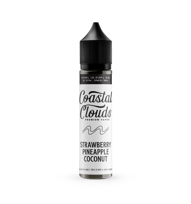 Coastal Clouds - Strawberry Pineapple Coconut 60mL blends sweet strawberries, tangy pineapple, and creamy coconut into a premium tropical vape experience. This freebase e-liquid perfectly balances three signature flavors - the juiciness of ripe strawberries, the bright acidity of pineapple, and the smooth richness of coconut - creating a complex yet refreshing profile. The 60mL bottle delivers Coastal Clouds' signature bold fruit flavor and excellent vapor production, optimized for sub-ohm devices. Enjoy the taste of a tropical getaway with every puff, as the sweet-tart fruit flavors mingle with creamy coconut undertones for a truly vacation-worthy vape.