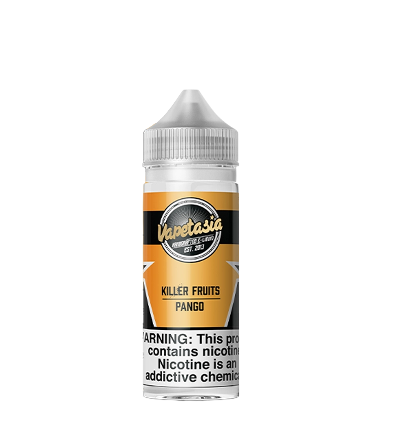 Vapetasia Killer Fruits E-Liquid - Pango 100mL delivers an exotic fusion of tangy passionfruit and sweet mango in perfect harmony. This premium 100mL e-liquid captures the vibrant essence of tropical fruits with its bold flavor profile that balances tart and sweet notes. The authentic passionfruit and mango combination creates a refreshing, full-bodied vape experience that transports you to the tropics. Enjoy this expertly crafted blend of two beloved tropical fruits in every puff of this high-quality Vapetasia e-liquid.